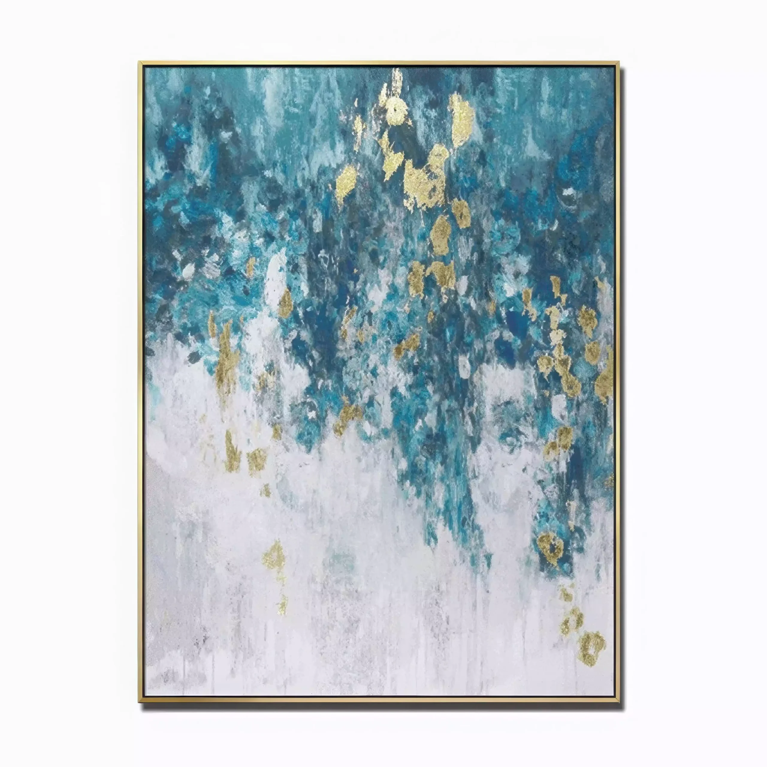 O pictura puternica si dinamica ce sugereaza o fuziune intre verdele naturii si albastrul adanc al apelor, redata cu tehnica impasto si detalii reliefate.