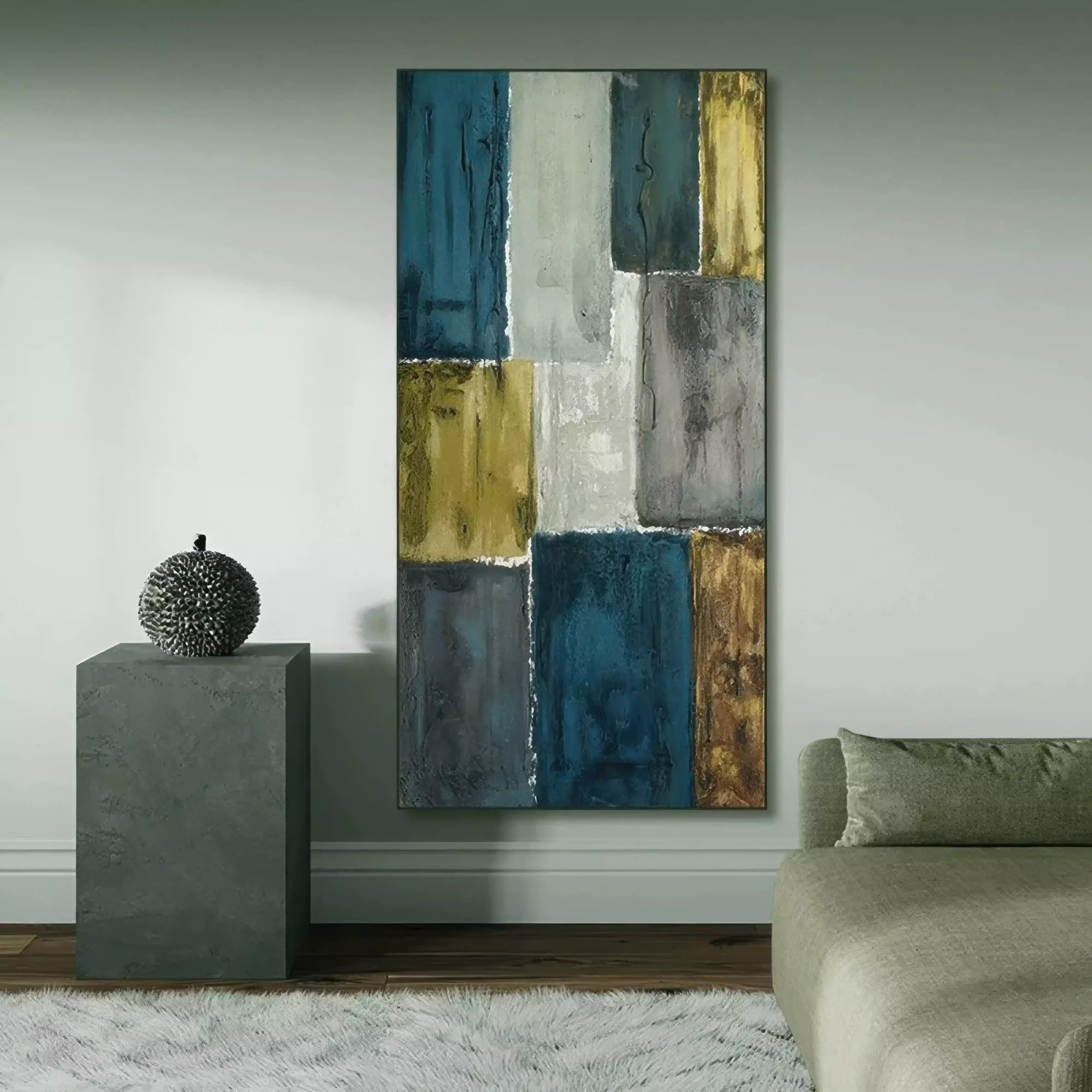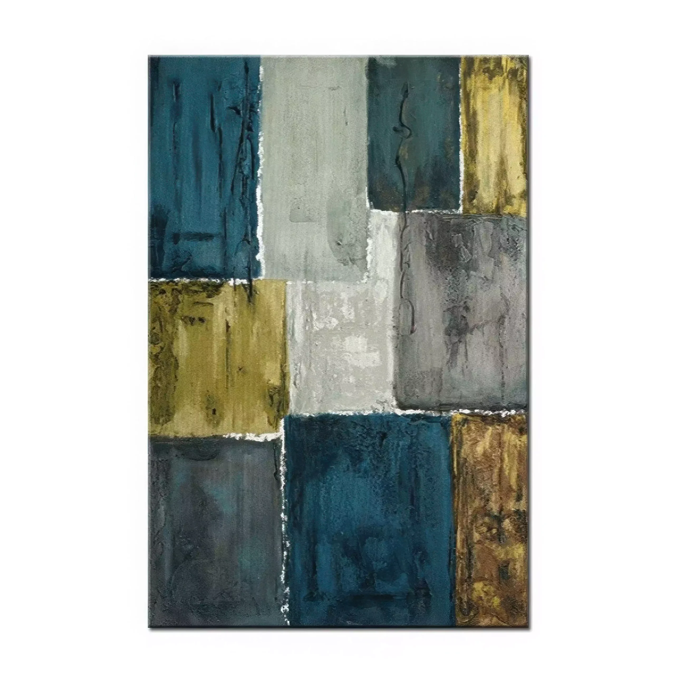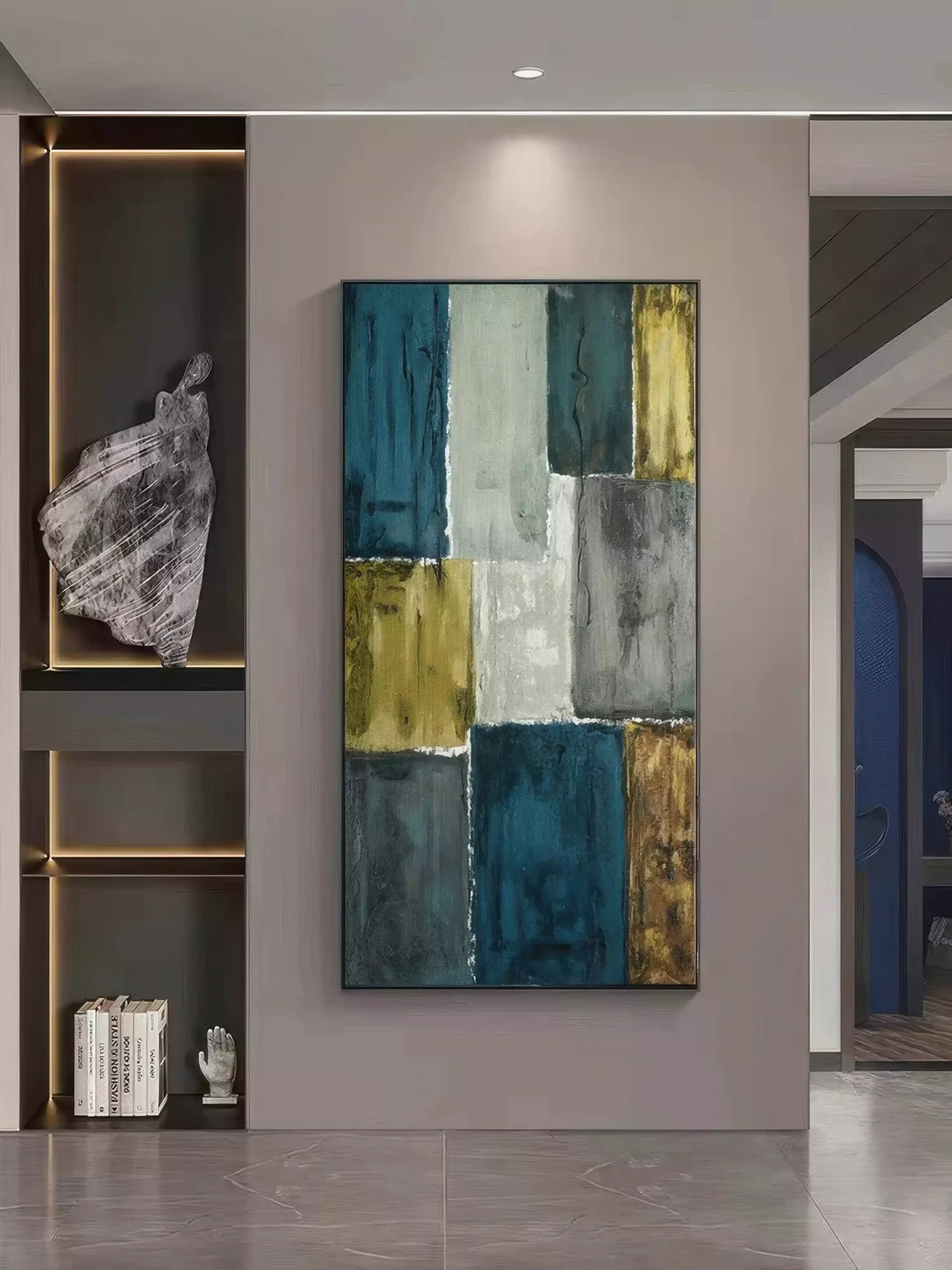 Un tablou abstract cu texturi bogate si culori acrilice subtile, creand o compozitie eleganta ce evoca introspectie si profunzime.