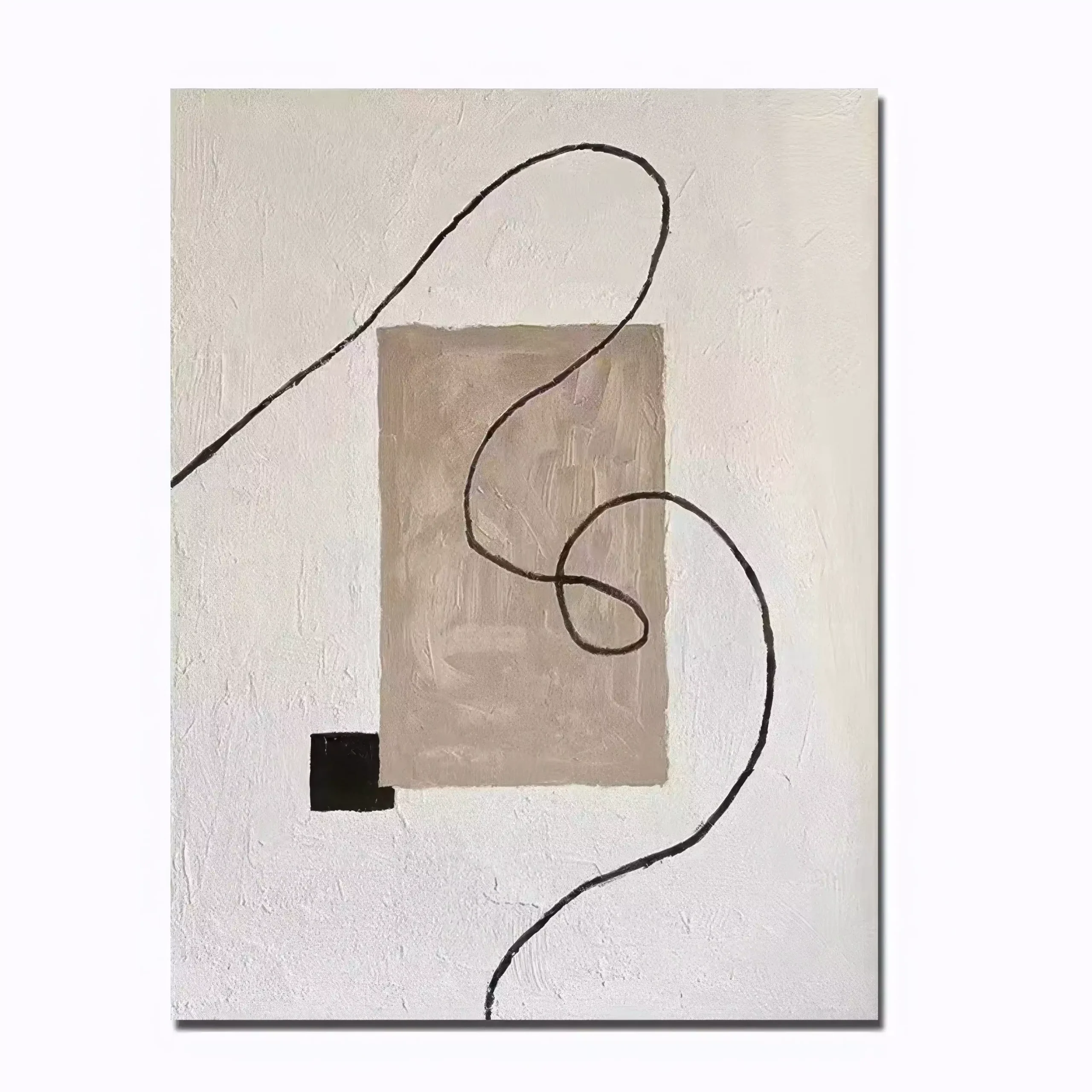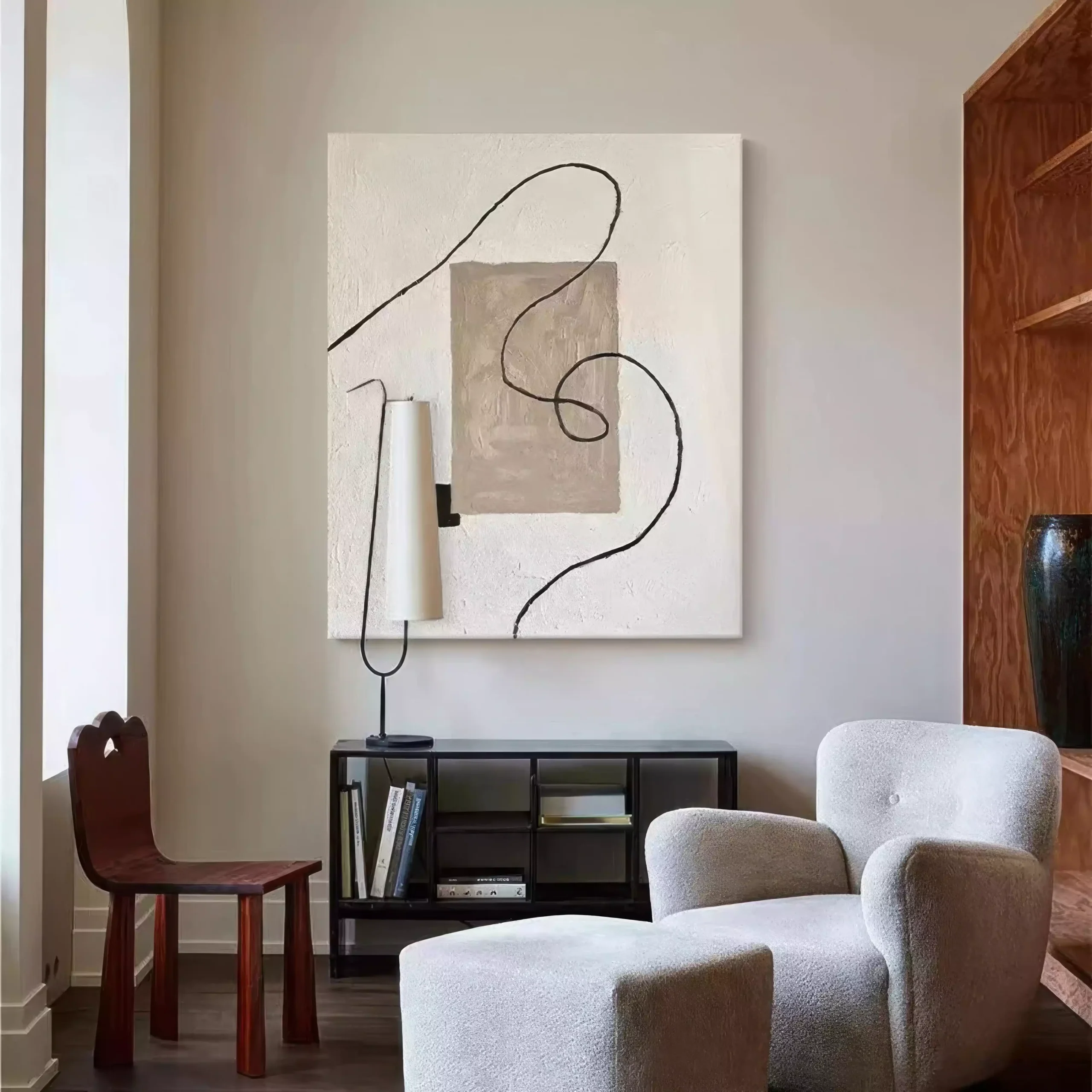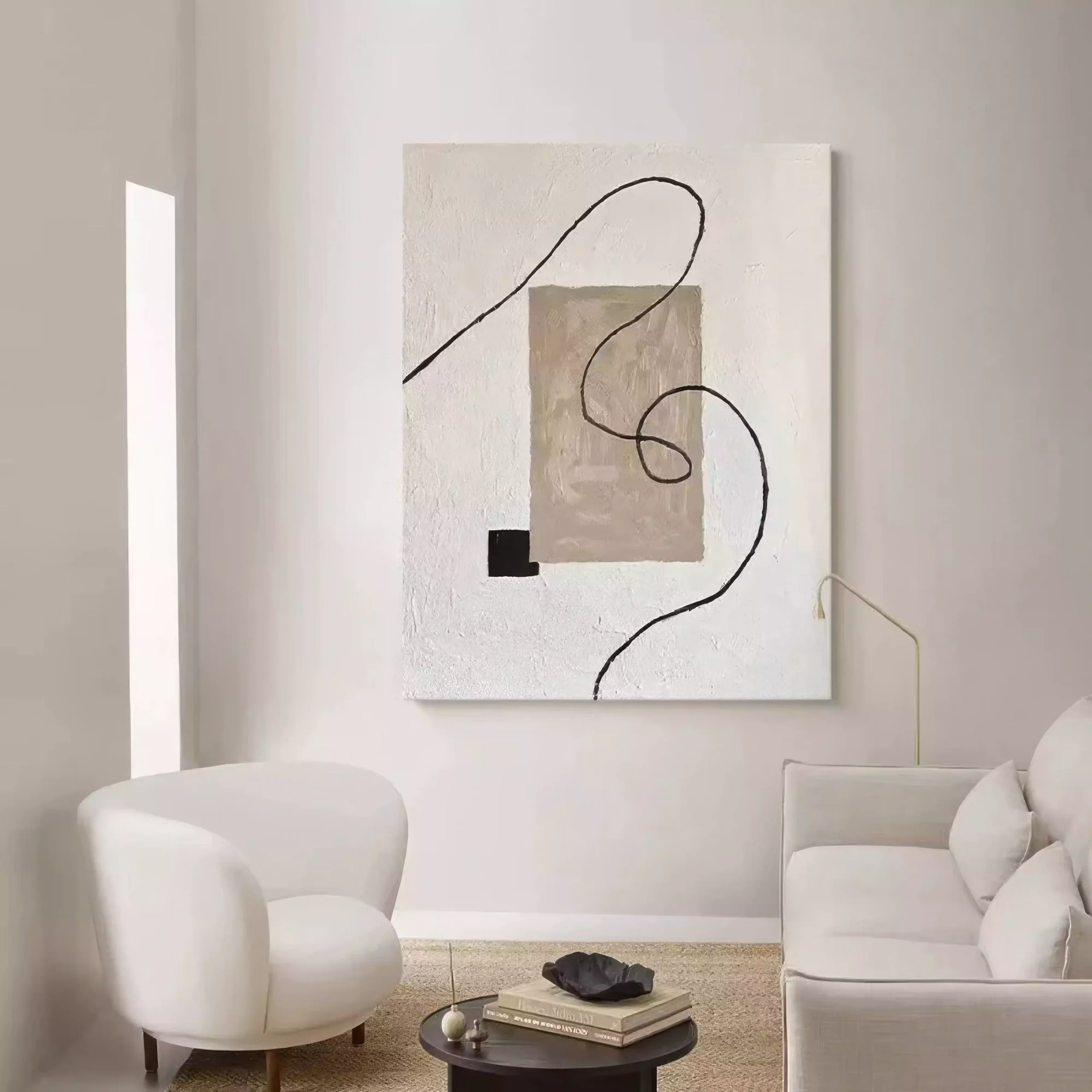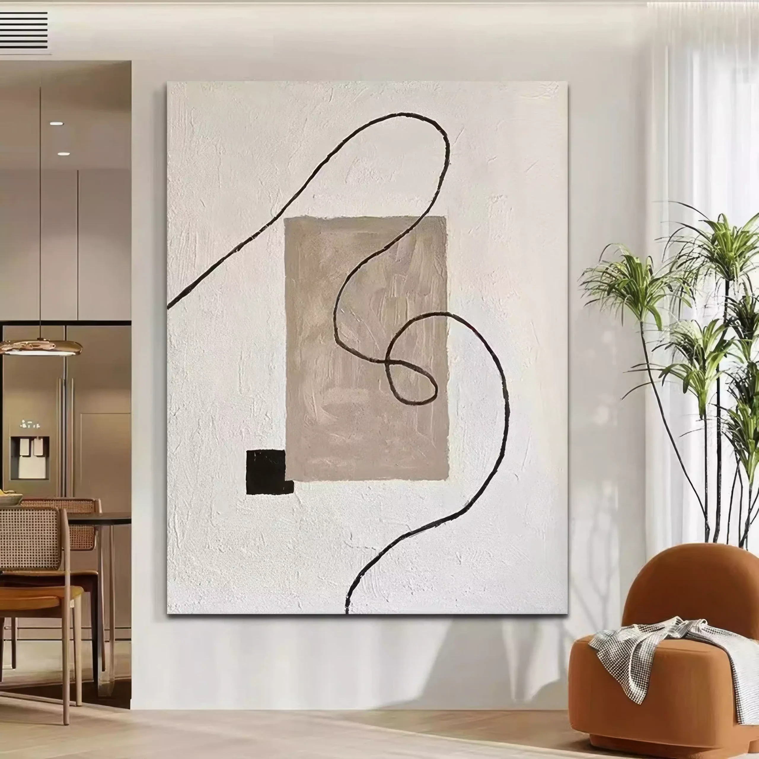 Tablou abstract în stil modern, combinând formele simple și liniile fluide într-o compoziție echilibrată și texturată.
