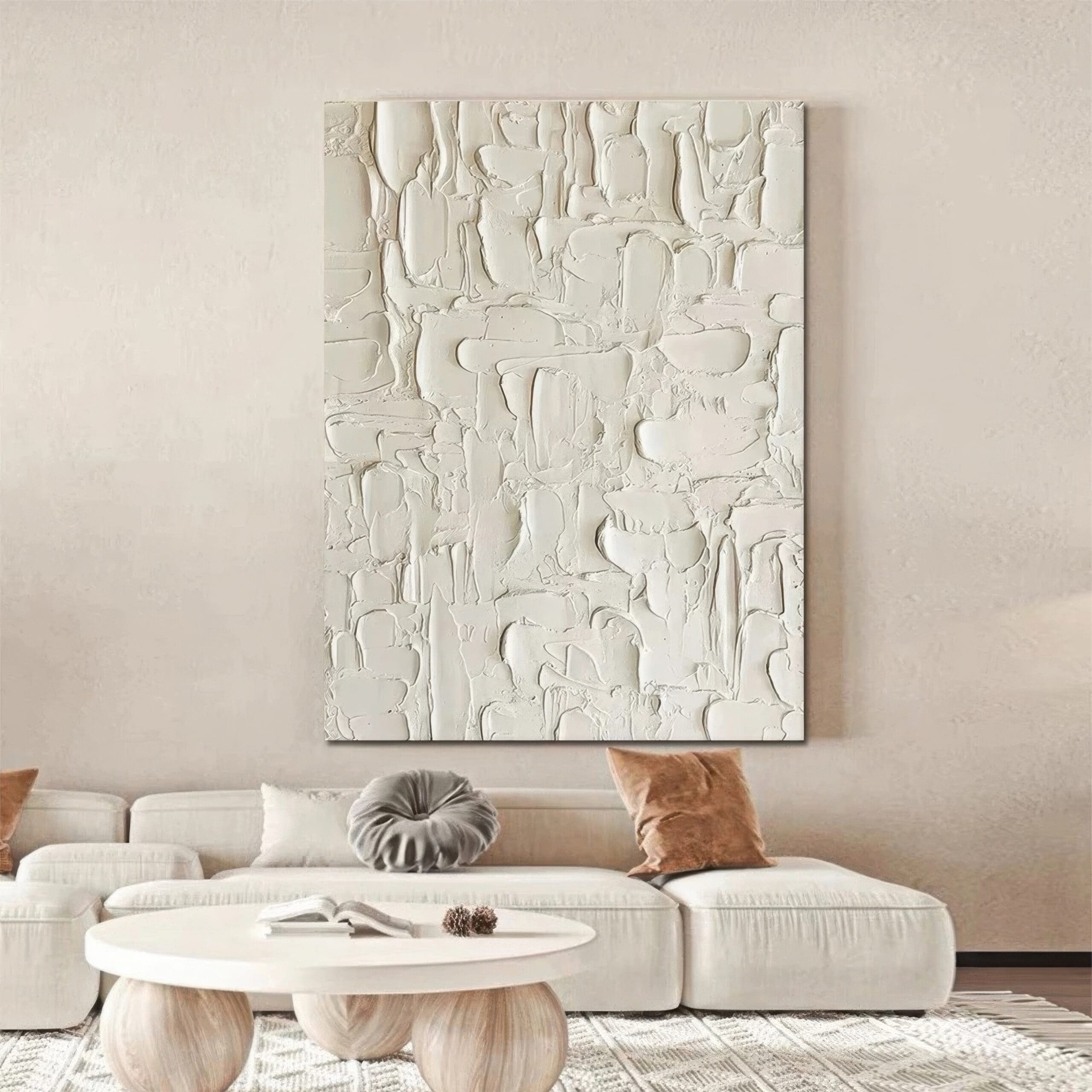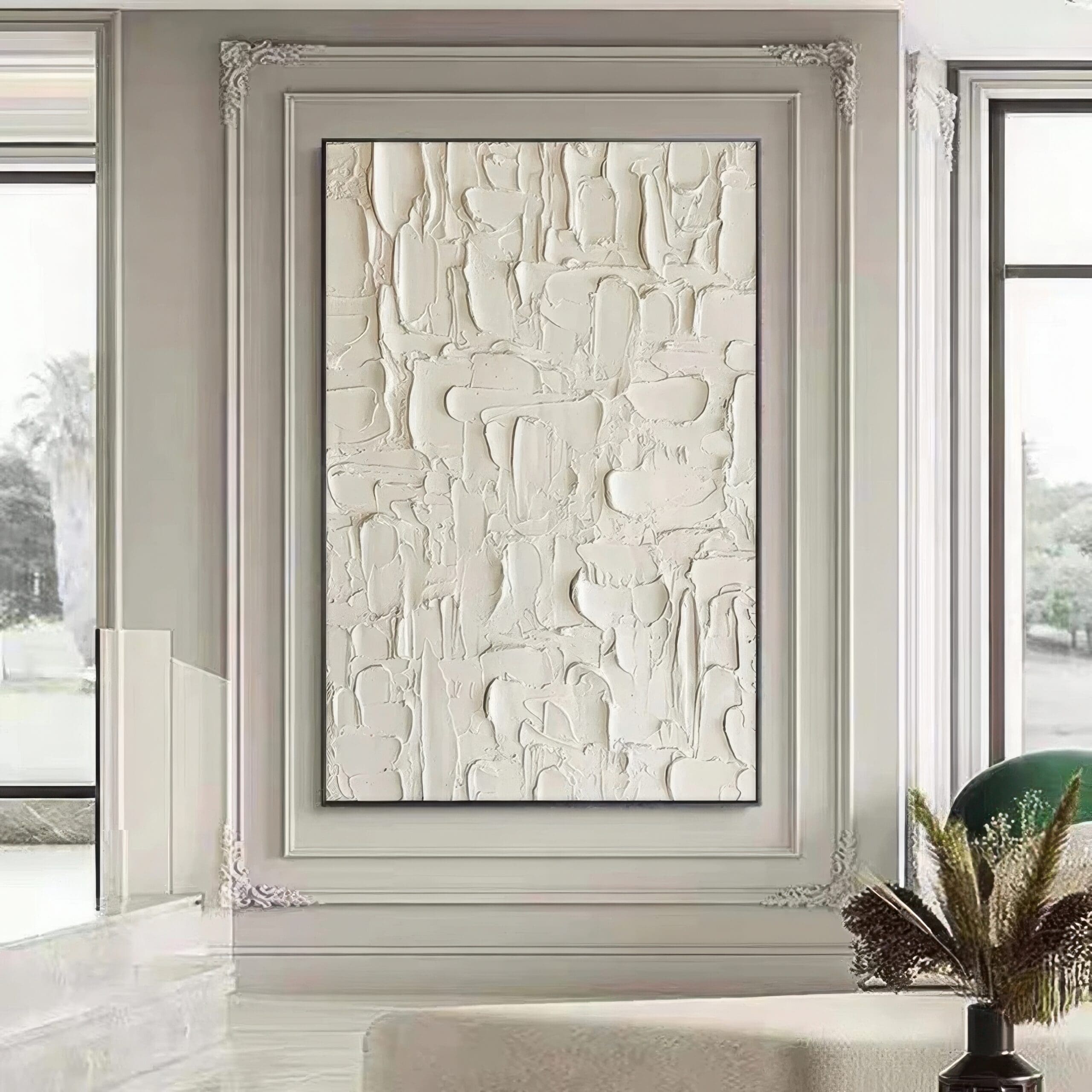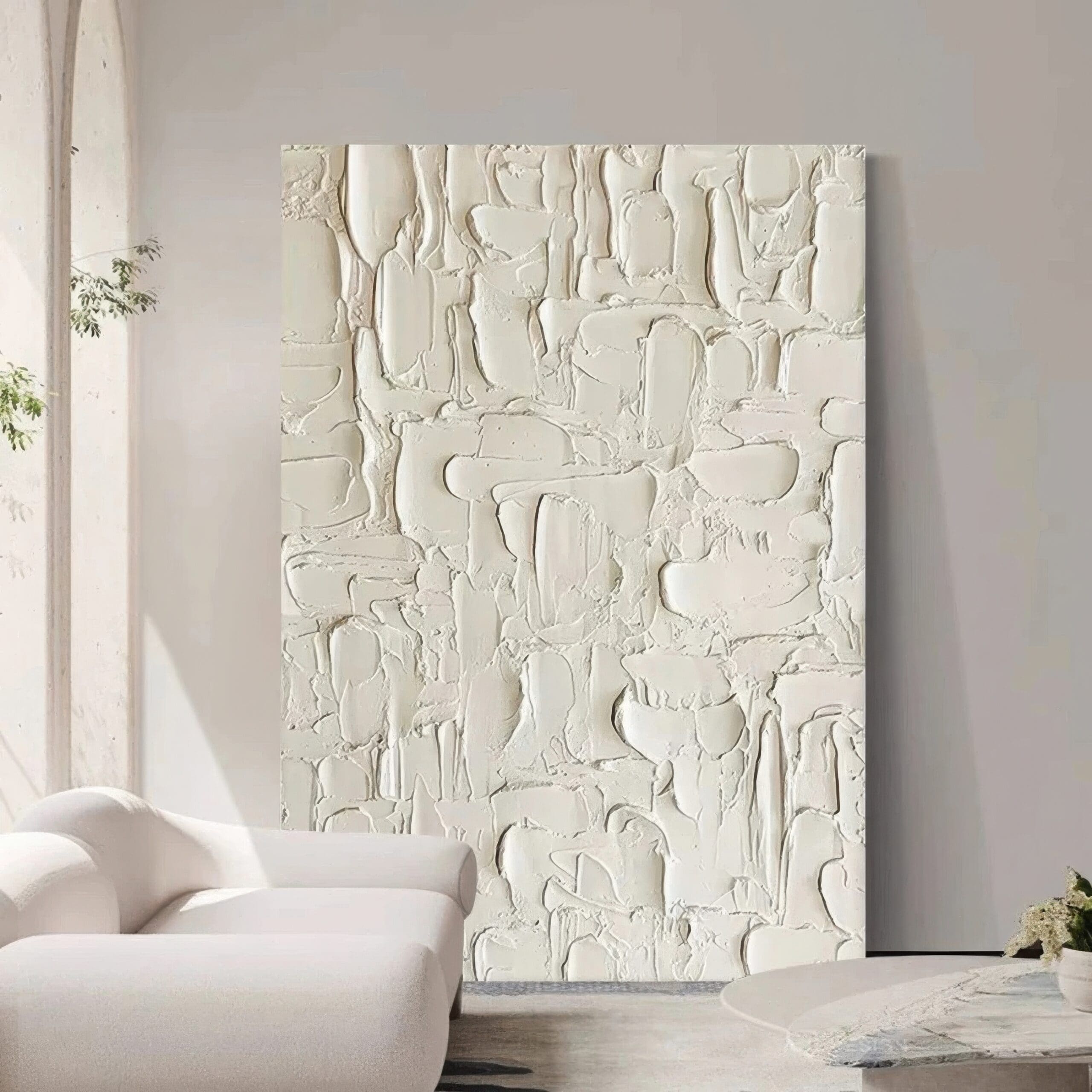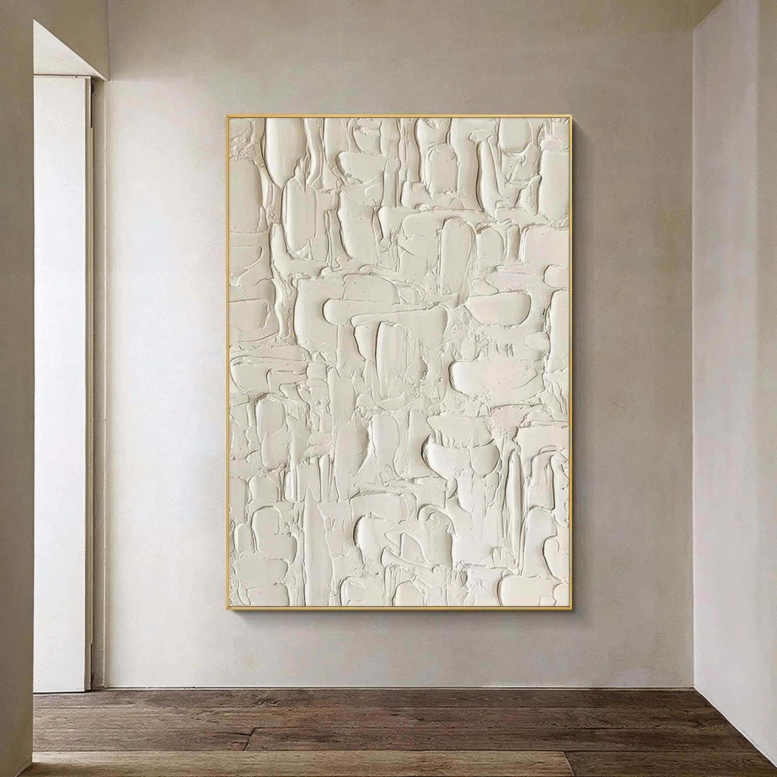 O piesă de artă bas-relief ce combină tehnica impasto cu o paletă monocromă, perfectă pentru interioarele moderne.