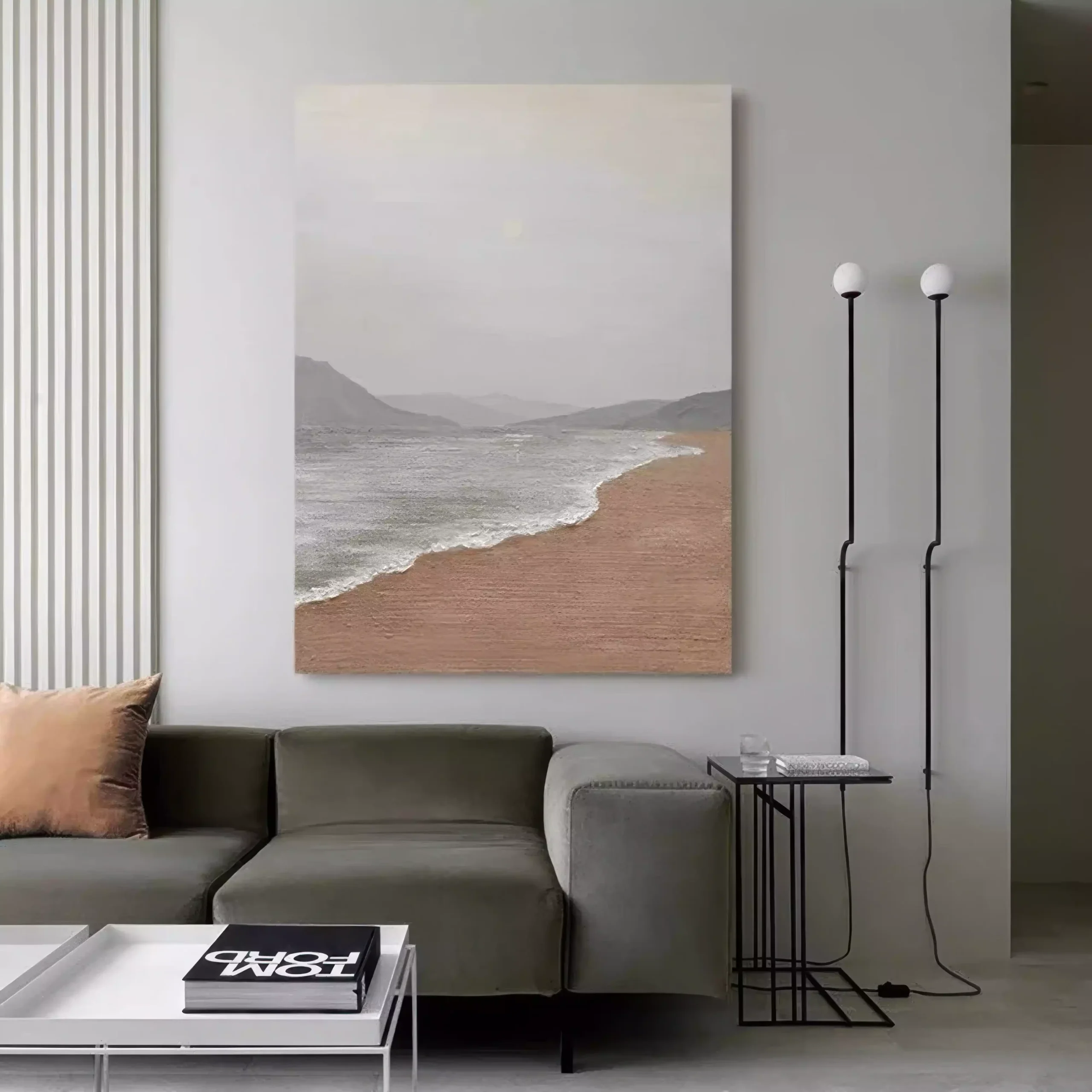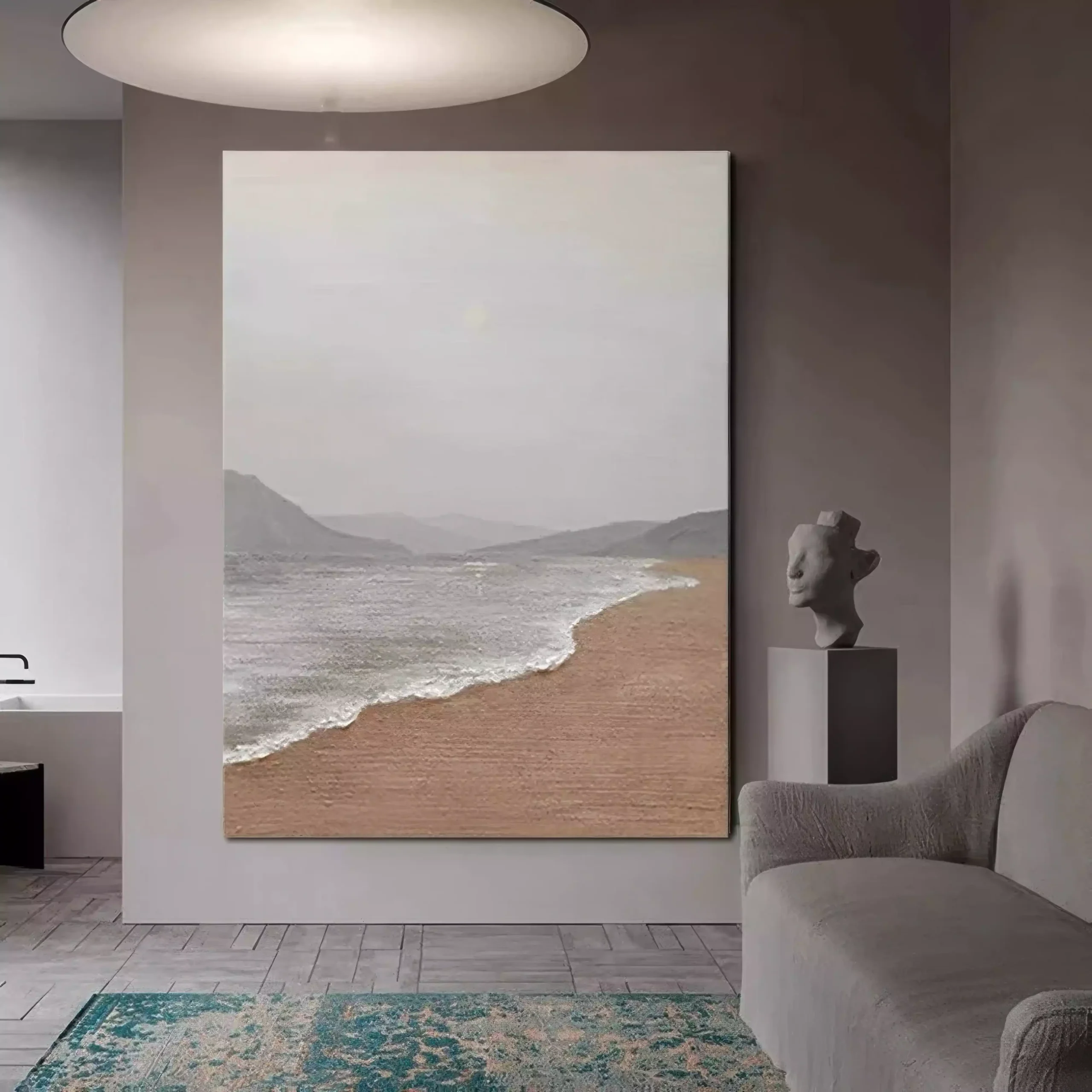 „Pacea Marii” este o reprezentare delicata a tarmului intr-o zi linistita, unde valurile moi se pierd in nisipul auriu. Straturile de vopsea acrilica aplicate cu cutitul de paleta si pasta de relief confera textura si profunzime tabloului, facand fiecare unda sa para vie si fiecare granula de nisip palpabila. Aceasta piesa este perfecta pentru a aduce un sentiment de calm si reflectie in orice incapere. Posibilitatea de a fi incadrata modern face ca „Pacea Marii” sa se potriveasca atat in spatii traditionale, cat si contemporane.