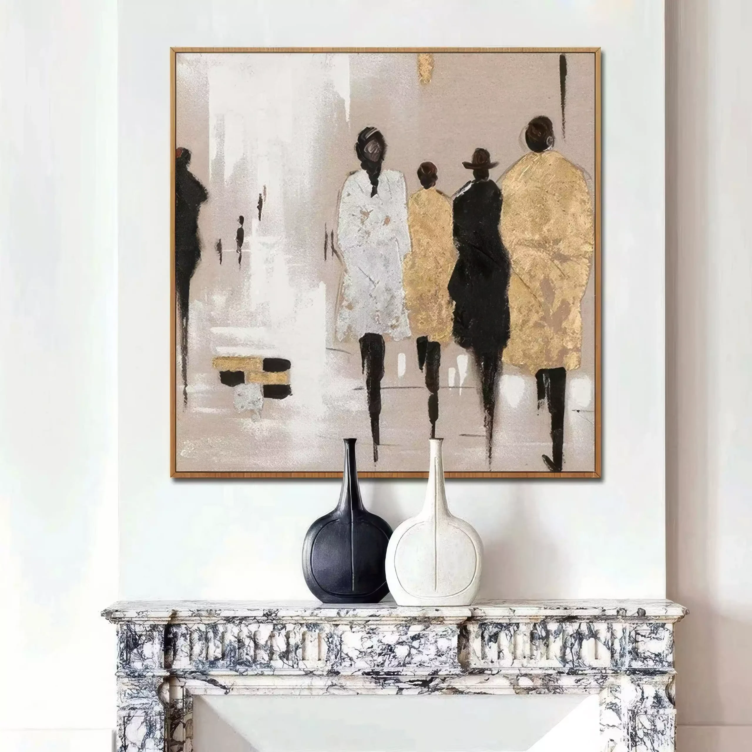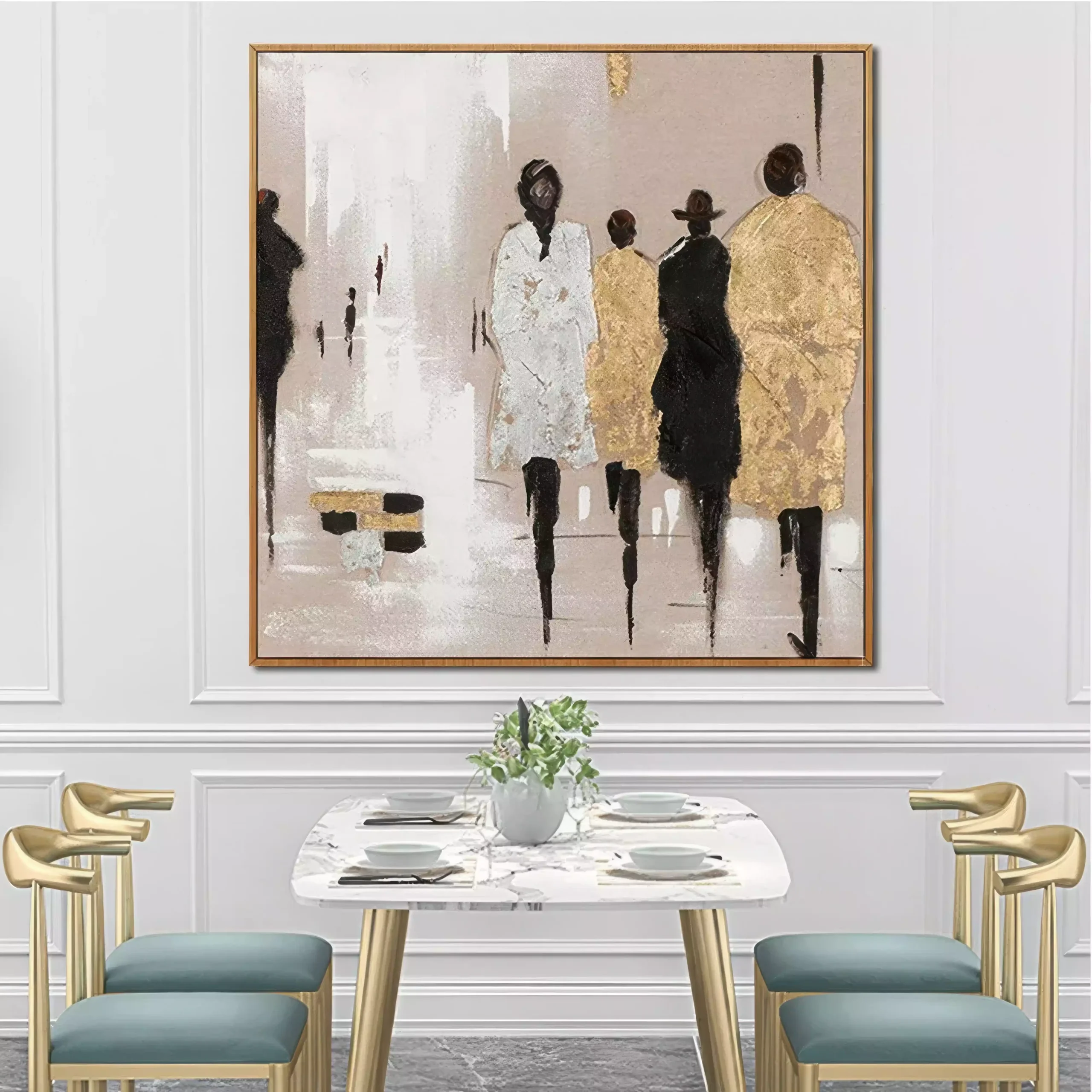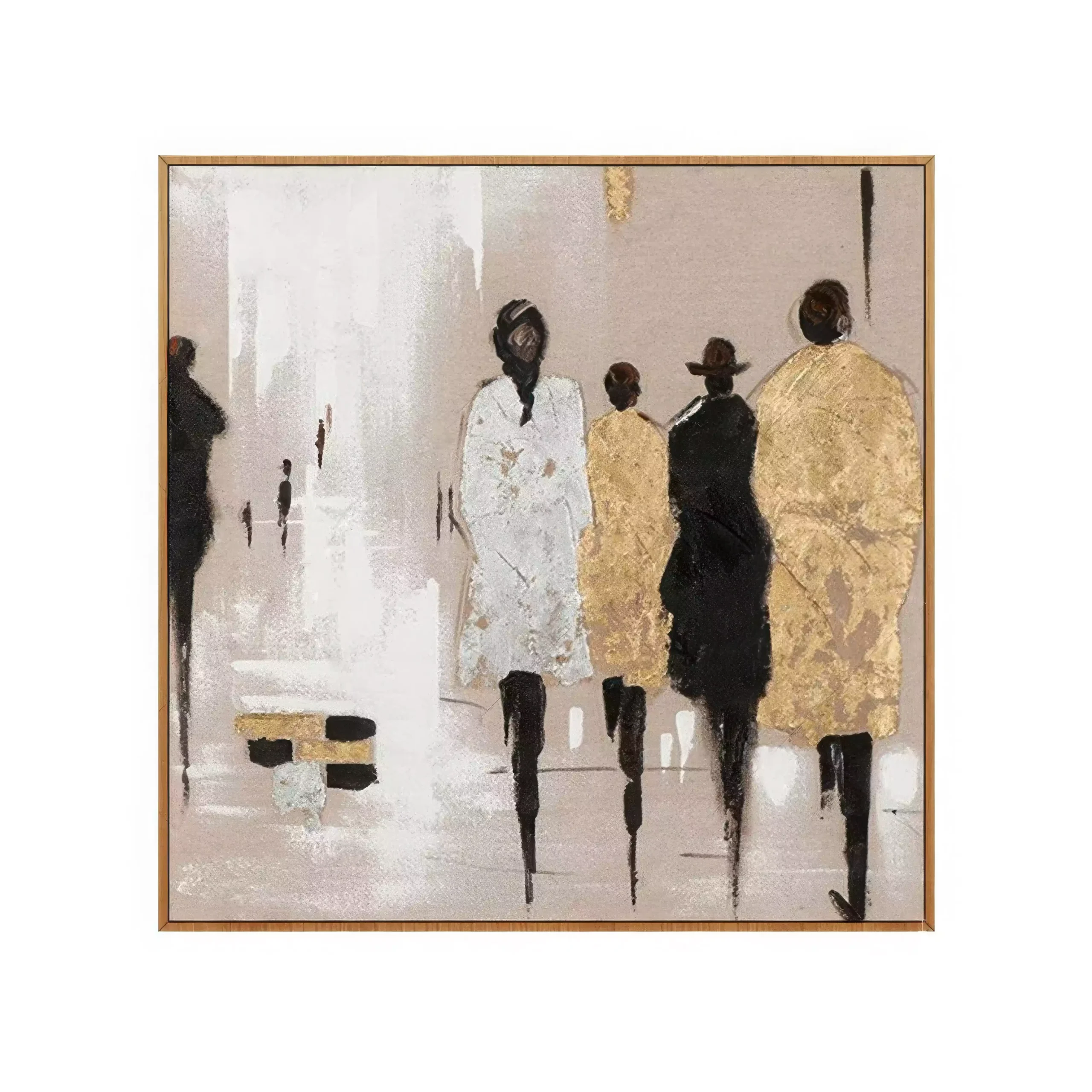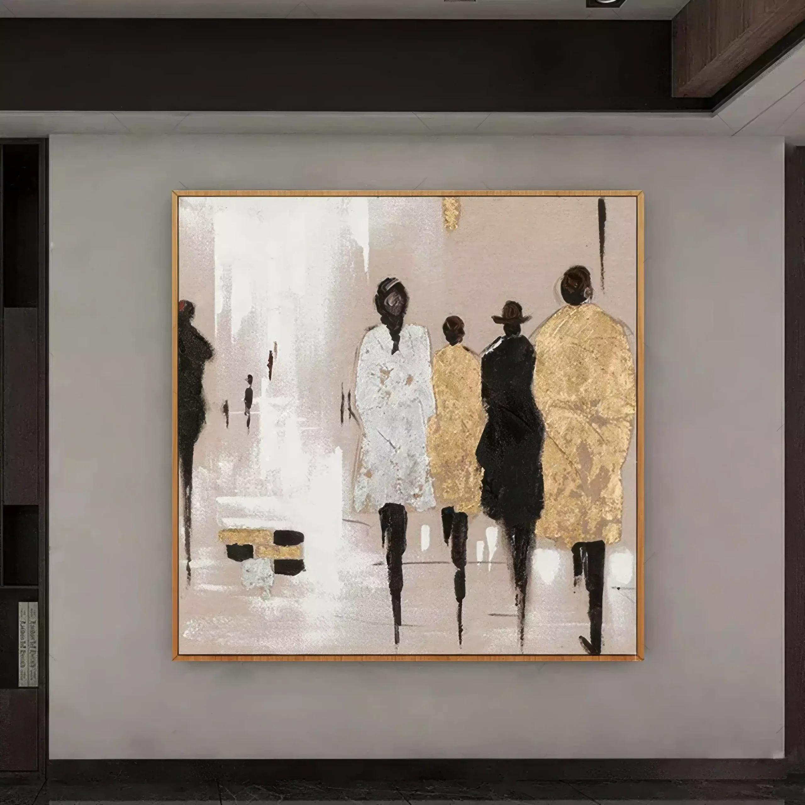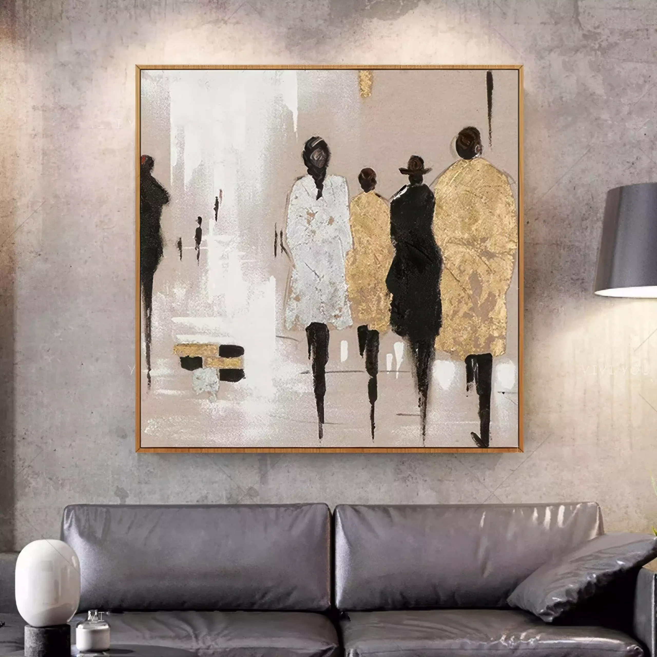 „Siluete in Miscare” este un tablou ce ilustreaza subtilitatea si dinamica unei scene urbane. Folosind tehnica impasto cu culori acrilice si pasta de relief, fiecare personaj prinde viata intr-o compozitie care emana eleganta si mister. Tabloul este realizat cu accente aurii ce aduc un plus de rafinament, facandu-l potrivit pentru orice spatiu modern. Prin aplicarea straturilor texturate cu cutitul de paleta, se creeaza un efect tridimensional care captiveaza privirea. Acest tablou se poate inrama modern pentru a se integra perfect intr-un decor contemporan sau minimalist.