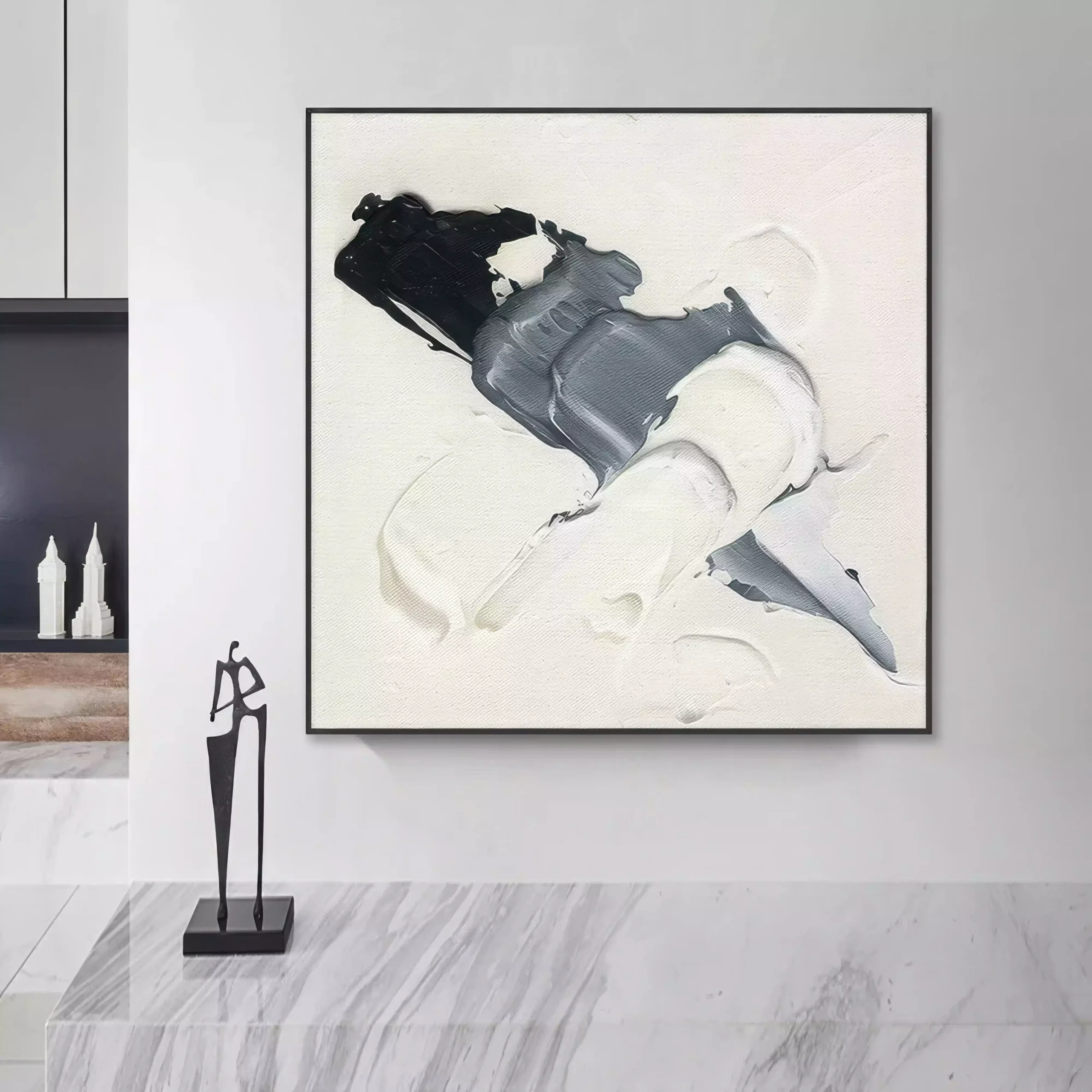 „Valuri de Monocrom” este un omagiu adus frumusetii pure a contrastelor alb-negru. Executat cu tehnica impasto folosind cutitul de paleta si pasta de relief, acest tablou ofera o textura tridimensionala ce capteaza lumina intr-un mod unic. Amestecul subtil de tonuri inchise si luminoase creeaza o dinamica vizuala ce insufla forta si echilibru in orice incapere. Poate fi incadrat intr-o rama moderna, accentuand designul minimalist si rafinat al spatiului.